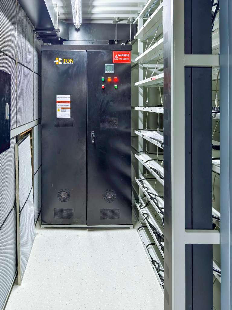 The Infraflow Mining container delivers as close to a turn-key system as possible. All that is required is a transformer to feed the InfraFlow distribution system at 415V and the miners of your choice. TON provides site specific consulting support to ensure the proper sizing and voltage of your transformer and miner configuration. TON also provides procurement support through TON’s trusted network of transformer and miner vendors to get your site up and optimized from the start.